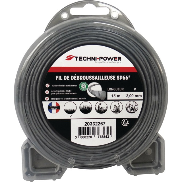 FIL DE DEBROUSSAILLEUSE ONDULE SP66 Ø 2 MM / 15 M TECHNI-POWER