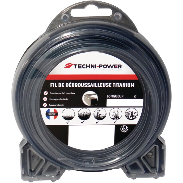 FIL DE DEBROUSSAILLEUSE CARRE DOUBLE PEAU TITANIUM Ø 2,5 MM / 15 M TECHNI-POWER